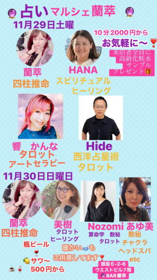 占いBAR蘭萃は、10月25日より、通常営業に戻ります。