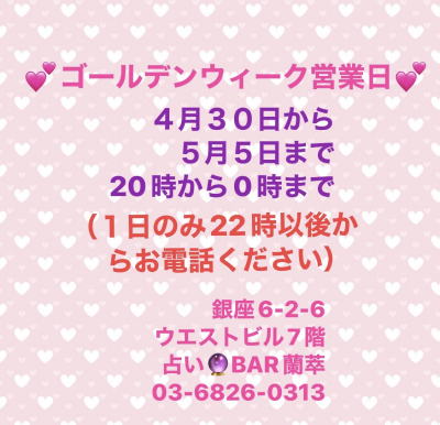 占いBAR蘭萃は、10月25日より、通常営業に戻ります。